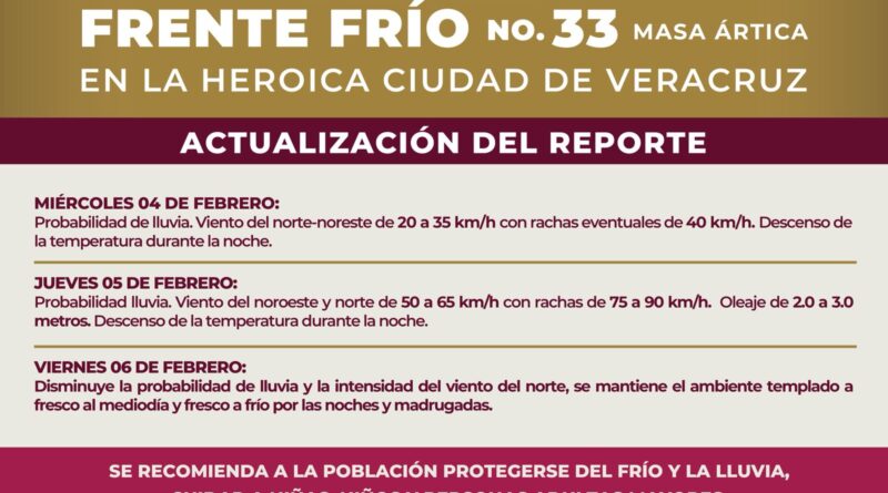Leer másAnte la cercanía del Frente Frío 33 que se espera ingrese en las próximas 24 horas, la dirección de Protección