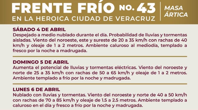 Leer másLa dirección de Protección Civil Municipal de Veracruz informa a la población que a partir de este domingo 5 de
