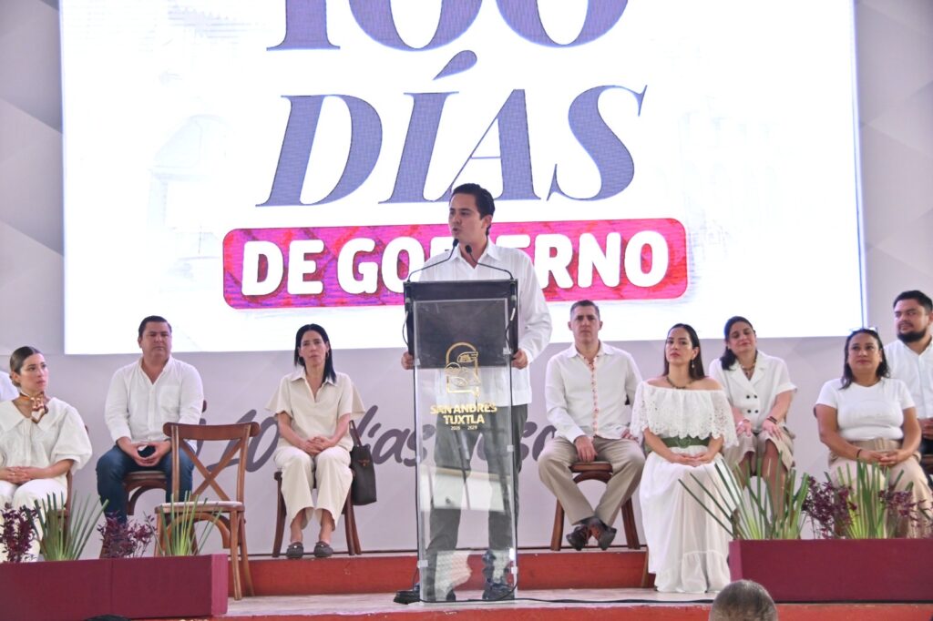 San Andrés Tuxtla, Ver., 19 de abril de 2026.- Este domingo, el presidente municipal, Rafa Fararoni Magaña rindió su informe de los primeros 100 días de Gobierno Municipal ante la ciudadanía sanadrescana.