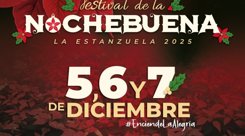 El Festival de la Nochebuena La Estanzuela, del 5 al 7 de diciembre, tendrá acceso libre a la zona de floricultores y artesanos. También brindará ambiente 100 por ciento familiar con juegos mécanicos, circo, además de grandes bailes y rodeo durante su fin de semana. Para conocer más detalles, puede visitarse la página de Facebook “Festival de la Nochebuena La Estanzuela”; y consultar accesos y boletos al teléfono 228 132 93 65.