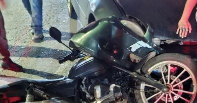 22-julio-2025.-Un motociclista sufrió un accidente la noche de este martes en el libramiento de Coatepec, luego de perder el control de su unidad y estrellarse contra una barrera metálica de contención.