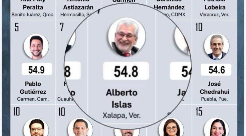 Xalapa, Ver., 30-octubre 2025.– A tan solo dos meses de concluir su administración, el alcalde de Xalapa, Alberto Islas, aparece en el lugar número siete del ranking nacional de los “Alcaldes Mejor Evaluados” elaborado por la encuestadora Mitofsky, con una calificación de 54.8 puntos.