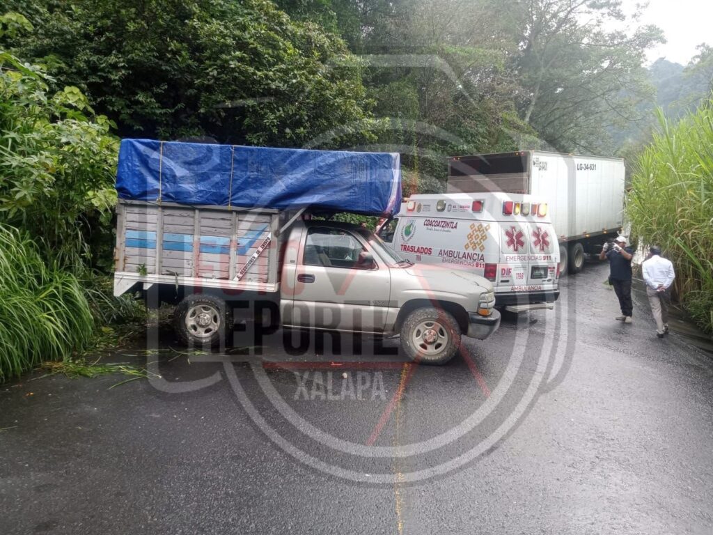 Jilotepec, Ver.,25-septiembre-2025.-La imprudencia al volante de un camión tipo Torton ocasionó un aparatoso accidente en el tramo carretero Coacoatzintla-Jilotepec, a la altura de El Esquilón, que dejó como saldo tres personas lesionadas de manera leve, entre ellas un menor de edad.