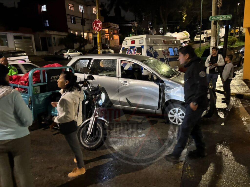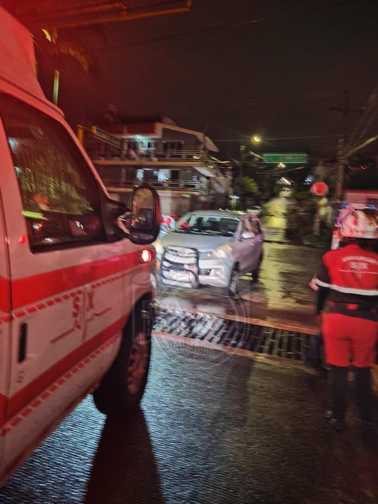 Xalapa. Ver. 08/Octubre/2025.- En el cruce de la avenida Justino Sarmiento y la calle Volcán de Colima, en Xalapa, la noche de este miércoles se registró un accidente vehicular entre dos unidades.