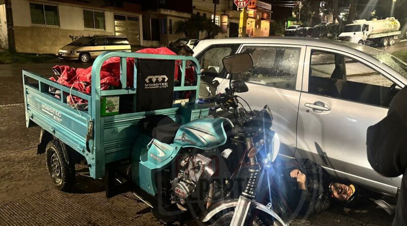 Se trata de una motocicleta de carga y un automóvil particular; se presume que uno de los dos conductores no respeto el cruce de 1×1.