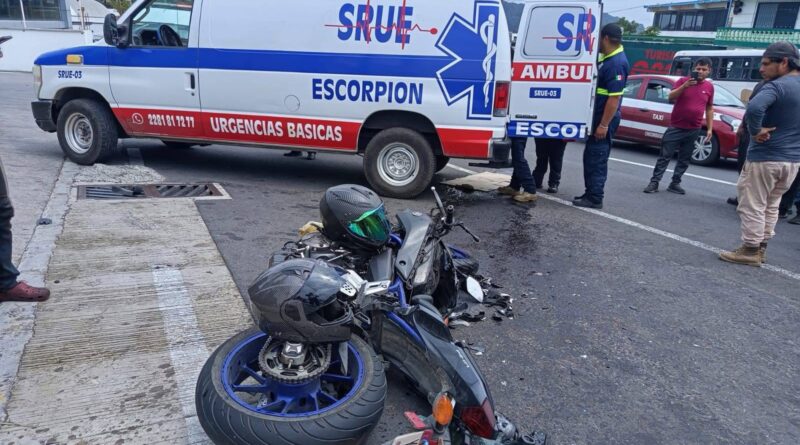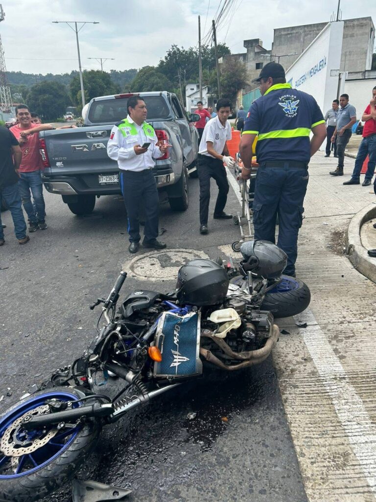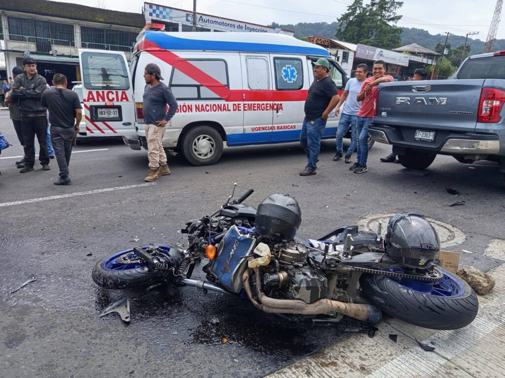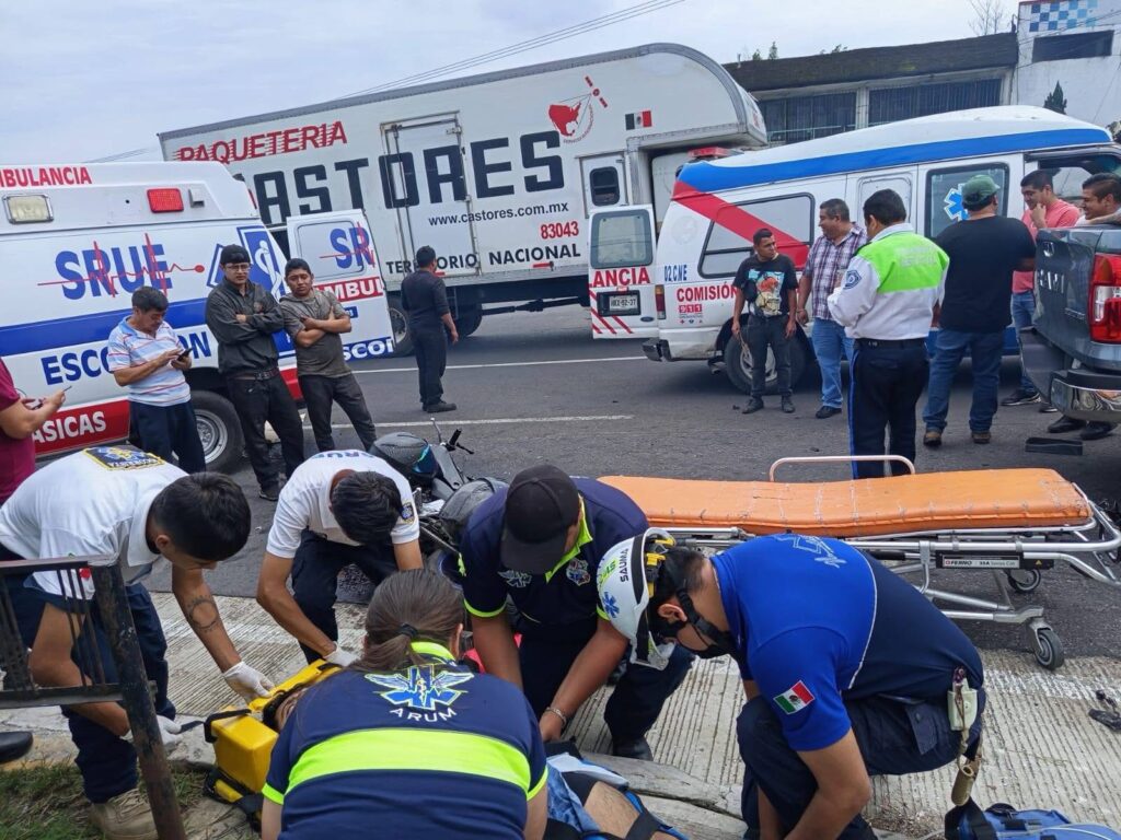 Accidente entre motocicleta y camioneta en la carretera Xalapa – Perote; dos lesionados