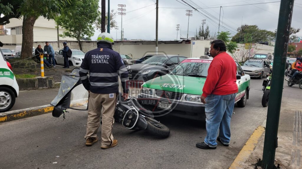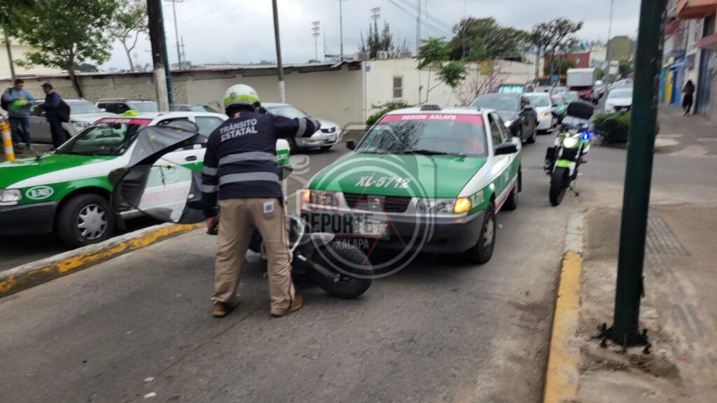 Xalapa, Ver. 24 de febrero 2026— Un percance vial se registró en la intersección de las calles Allende, Juan Zili y Ciprés, en la colonia La Unión, donde un taxi y una motocicleta se vieron involucrados en un choque.