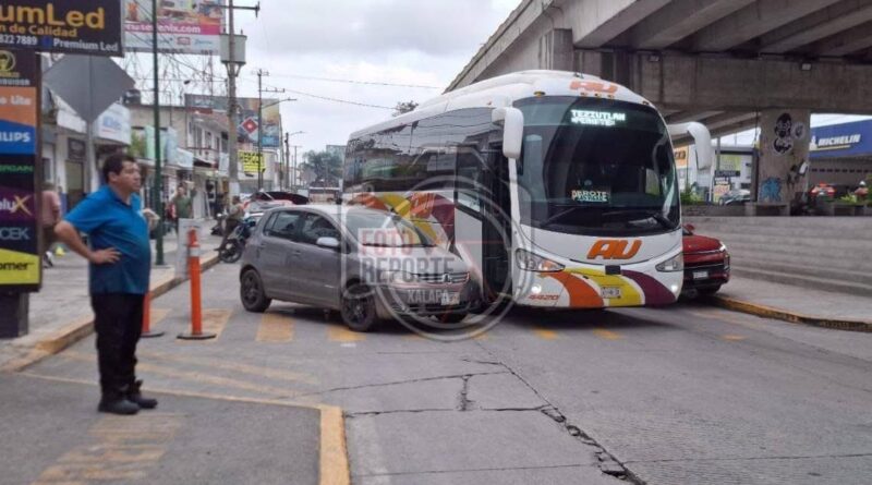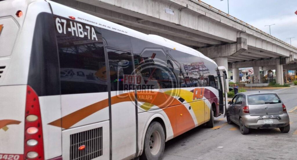 El percance involucró a un Volkswagen tipo Lupo y un autobús de la línea AU, con número económico 4420, que cubría la ruta hacia Perote, Las Vigas y Teziutlan.