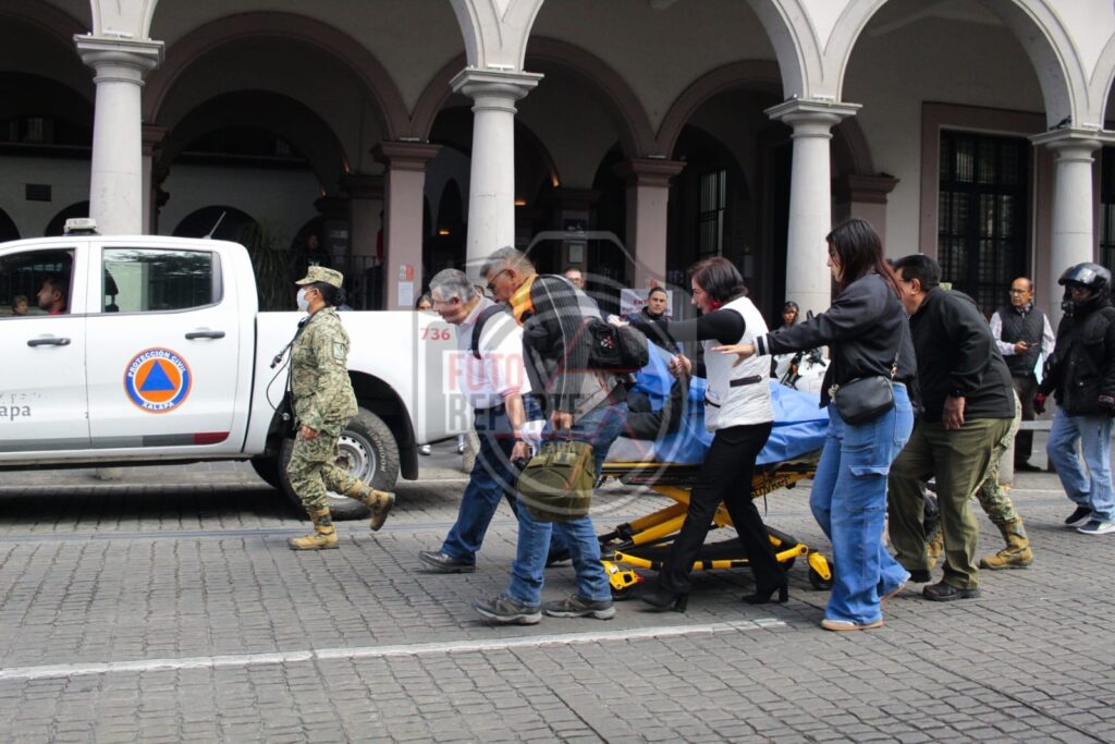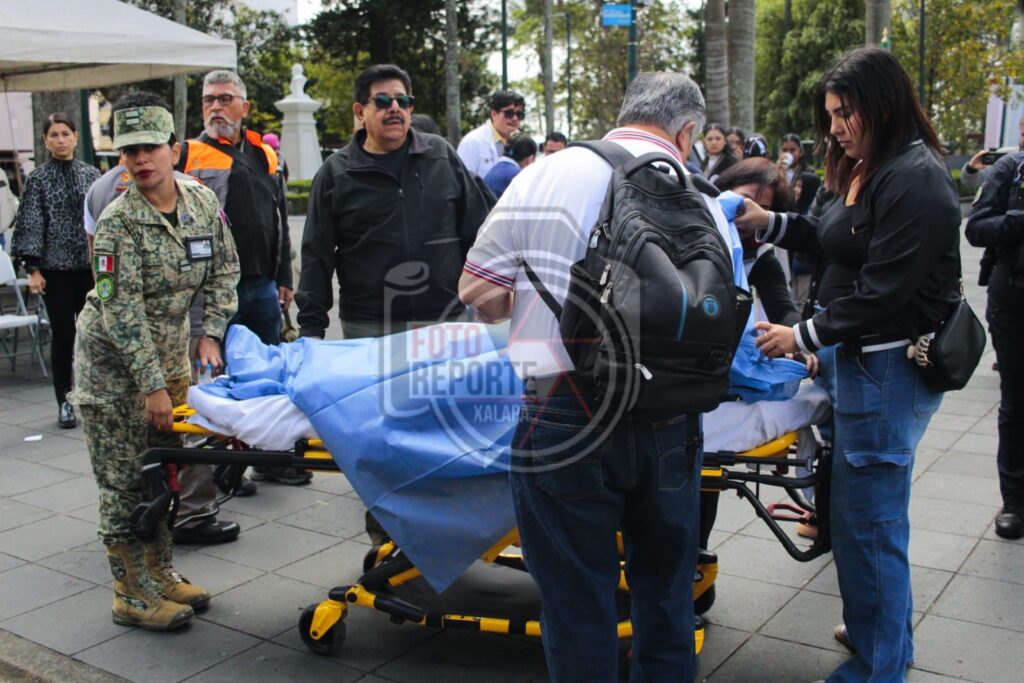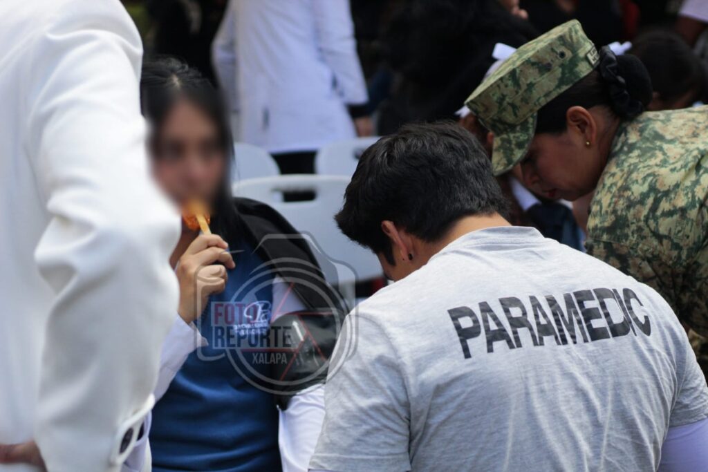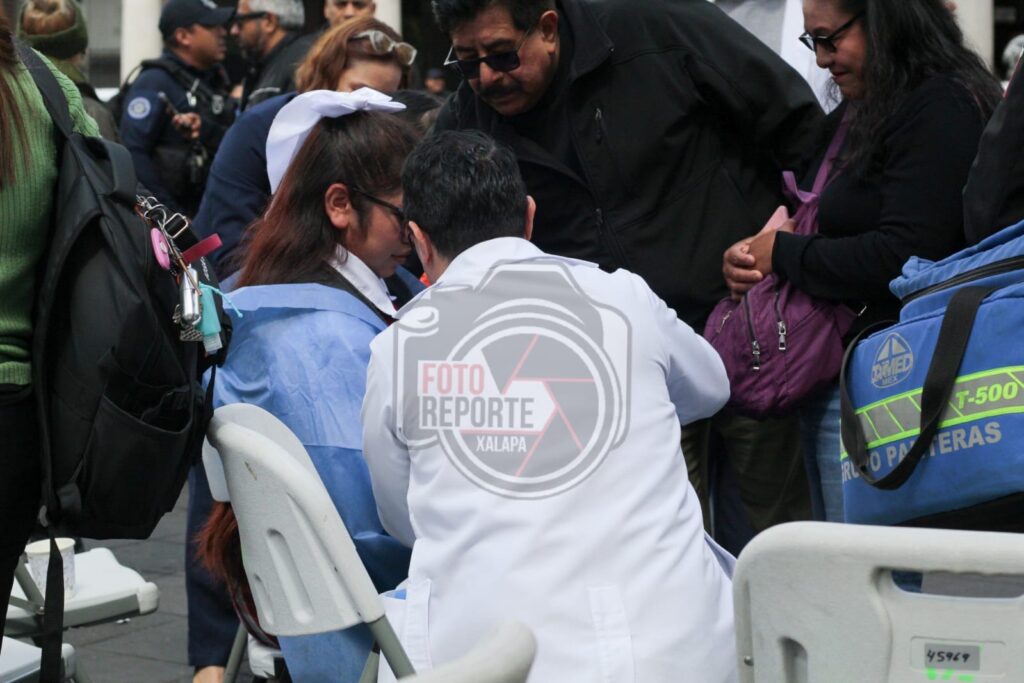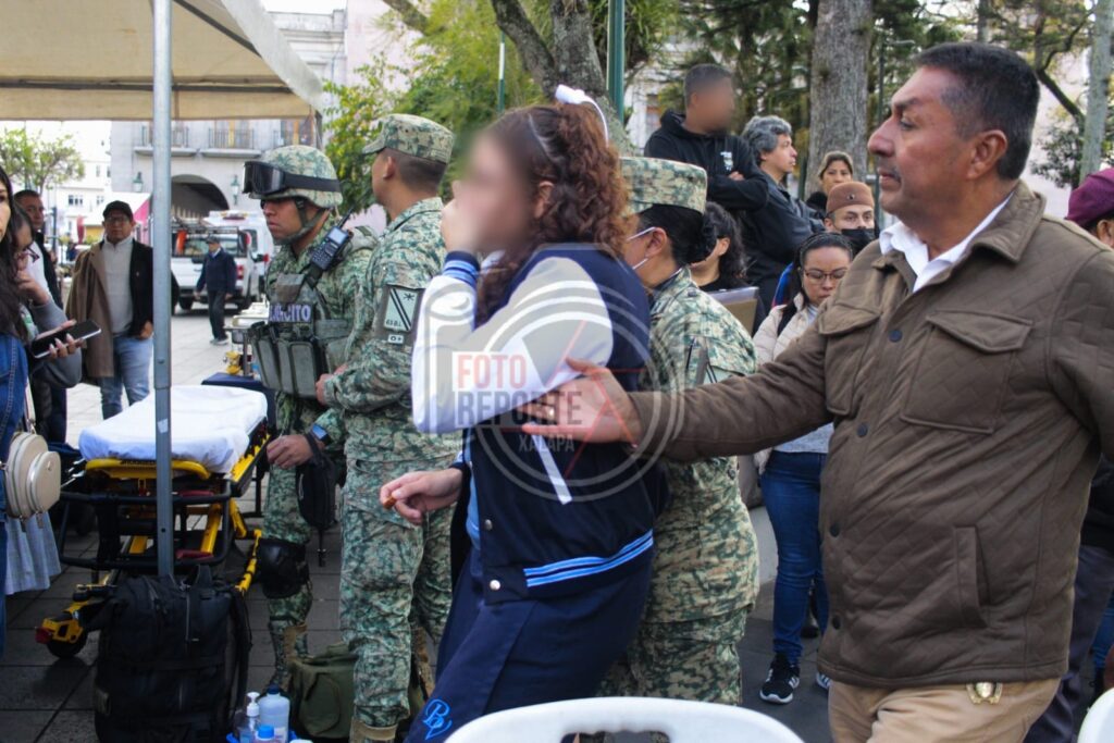 Xalapa, Ver., 24 de febrero de 2026.– Durante la ceremonia conmemorativa del Día de la Bandera realizada la mañana de este martes en el Parque Juárez, varios alumnos de nivel secundaria presentaron malestares físicos, presuntamente derivados de una crisis colectiva asociada a hipotermia por las bajas temperaturas registradas.