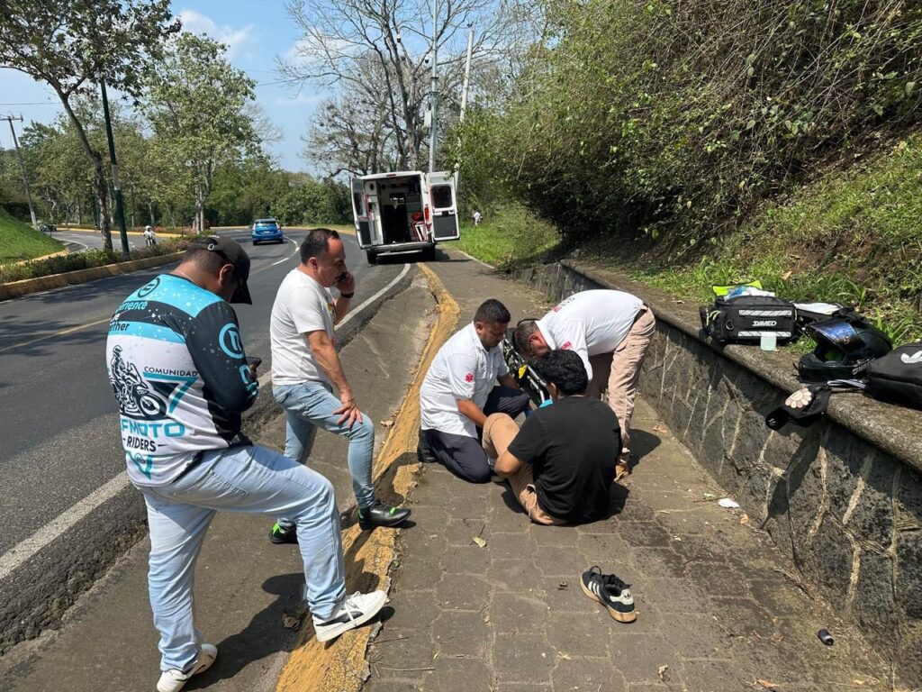 23-abril-2026.- Un motociclista resultó lesionado la tarde de este jueves, luego de sufrir un derrape sobre la avenida Rafael Murillo Vidal, en la ciudad de Xalapa.