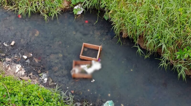 Coatzintla, Ver., 12-febrero-2026.-Debajo del puente Galeana, en el fraccionamiento San Rafael, fue encontrado un feto al interior de una caja de madera que había sido arrojada a un arroyo de aguas negras.