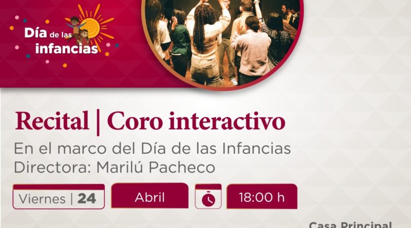 Xalapa, Ver., martes 21 de abril de 2026.- En el marco del Día de las Infancias, la Secretaría de Cultura de Veracruz (SECVER) invita al Recital Coro Interactivo, a cargo de Marilú Pacheco, el viernes 24 de abril a las 18:00 horas, en el Centro Cultural Casa Principal, en la ciudad de Veracruz. La entrada es gratuita.