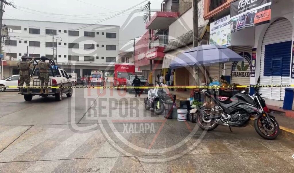 Acayucan, Ver.,28-febrero-2026.-La mañana de este sábado se registró un ataque armado en pleno centro de la ciudad, frente al Mercado Miguel Alemán, donde una mujer perdió la vida y un hombre resultó gravemente herido.