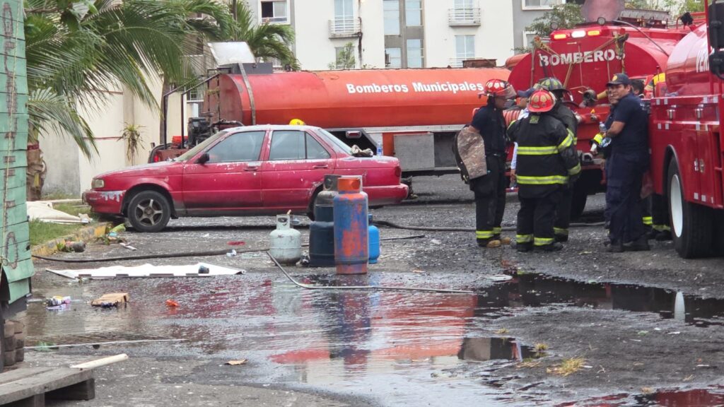 Atienden Bomberos y PC municipal de Veracruz incendio tras explosión en Rincón de Palma Real
