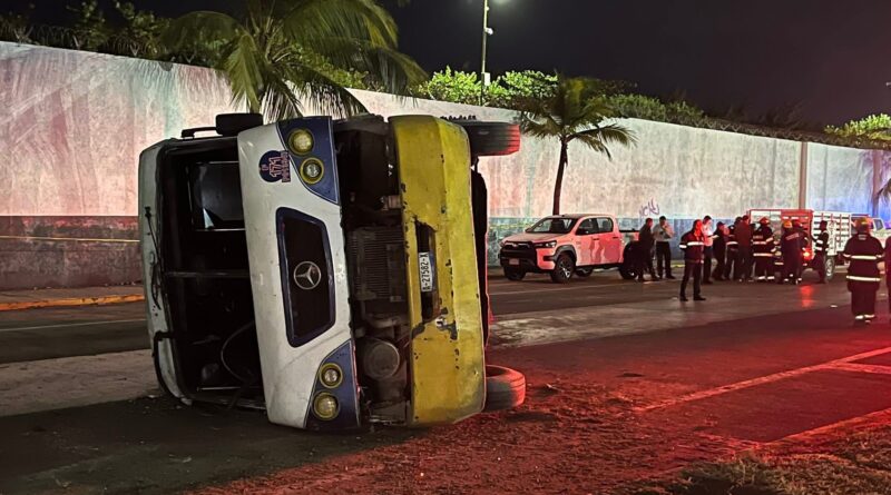 El Ayuntamiento de Veracruz informa que 14 personas resultaron lesionadas, cuatro de ellas con lesiones de gravedad, tras la volcadura de un camión de pasaje registrada la noche de este lunes en el Blvd. Fidel Velázquez, casi esquina Cuauhtémoc, de la colonia Los Pinos, frente al Deportivo La Pinera.