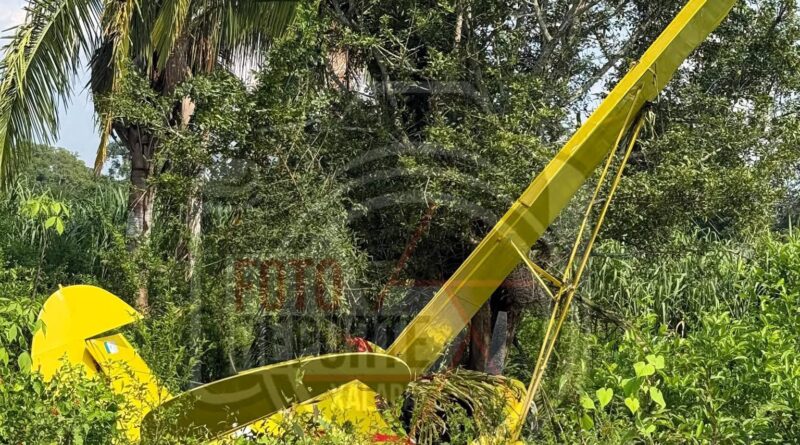 Chacaltianguis, Ver.,1-dic-2025.-Durante la mañana de este lunes, una avioneta de color amarillo utilizada para labores de fumigación agrícola terminó desplomándose en la comunidad de Torno Largo, perteneciente a este municipio.