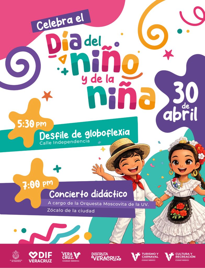 El Ayuntamiento de Veracruz y el DIF Municipal festejarán este 30 de abril a la niñez de la ciudad en una tarde de convivencia familiar y alegría, en un evento pensado para reconocer la importancia de las niñas y los niños y promover espacios de sana recreación para las familias veracruzanas.
