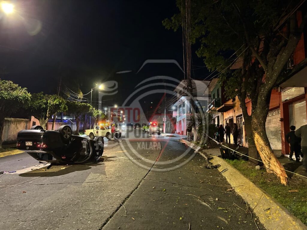 Xalapa, Ver. 02 de enero 2025.- Un aparatoso accidente vehicular se registró la noche de este viernes sobre la avenida 20 de Noviembre, a la altura de la calle 5 de Febrero, cuando un automóvil que circulaba con dirección a la avenida Xalapa perdió el control y terminó impactándose contra un árbol ubicado en la banqueta.