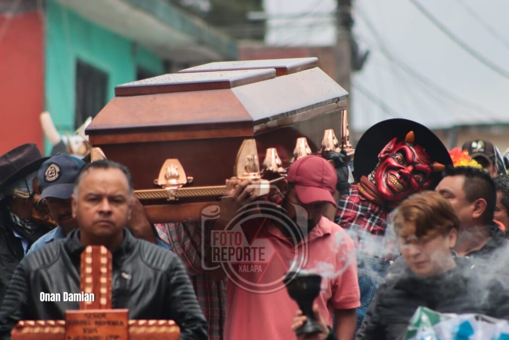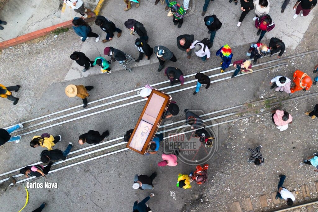 Sin embargo, este año la alegría tuvo un matiz distinto. En medio de la música y el baile, el cortejo fúnebre de Rafael Armenta, uno de los organizadores del carnaval, avanzó por las calles del municipio. Desde la iglesia hasta el panteón municipal, carnavaleros acompañaron el recorrido con danzas, en un gesto que unió el duelo con la tradición.