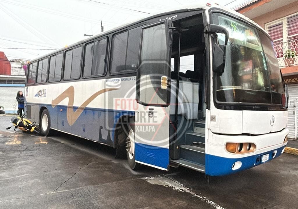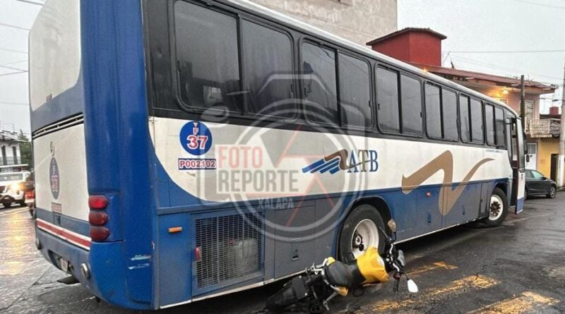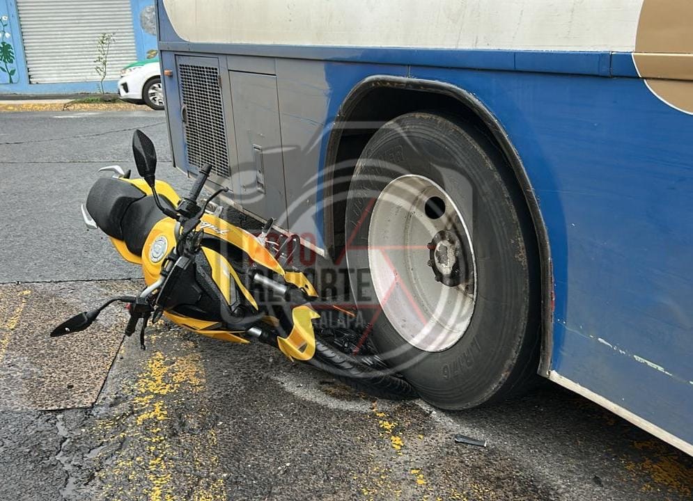 Camión de pasajeros aplasta motocicleta; no hubo lesionados