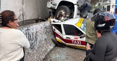 Huatusco, Ver. 23 de febrero de 2025.- Un camión estuvo a punto de precipitarse al vacío luego de salirse de la carretera en el tramo Huatusco-Coscomatepec, quedando con la cabina suspendida sobre la barranca del Río Jamapa.