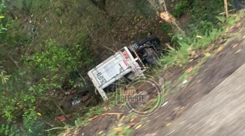 Camioneta de carga vuelca en la carretera Las Trancas–Coatepec