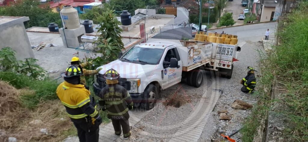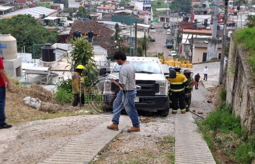 Xalapa, Ver. 06 de octubre 2025.- La tarde de este lunes se registró una movilización de cuerpos de emergencia luego de que una camioneta de gas quedara en riesgo de caer sobre una vivienda, en la calle Francisco Villa, casi esquina con Boulevard Diamante.