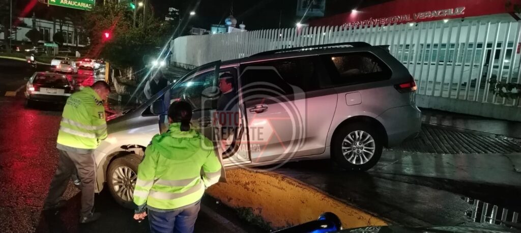 Xalapa, Ver. 23 de diciembre 2025.- Esta noche, una camioneta que salía de las oficinas del Infonavit, ubicadas en la esquina de las avenidas 20 de Noviembre y Lázaro Cárdenas, en Xalapa, quedó atorada al caer en un desnivel cuando intentaba incorporarse a la vialidad.
