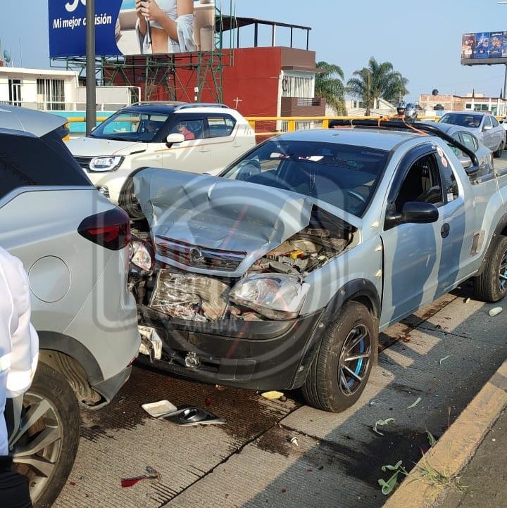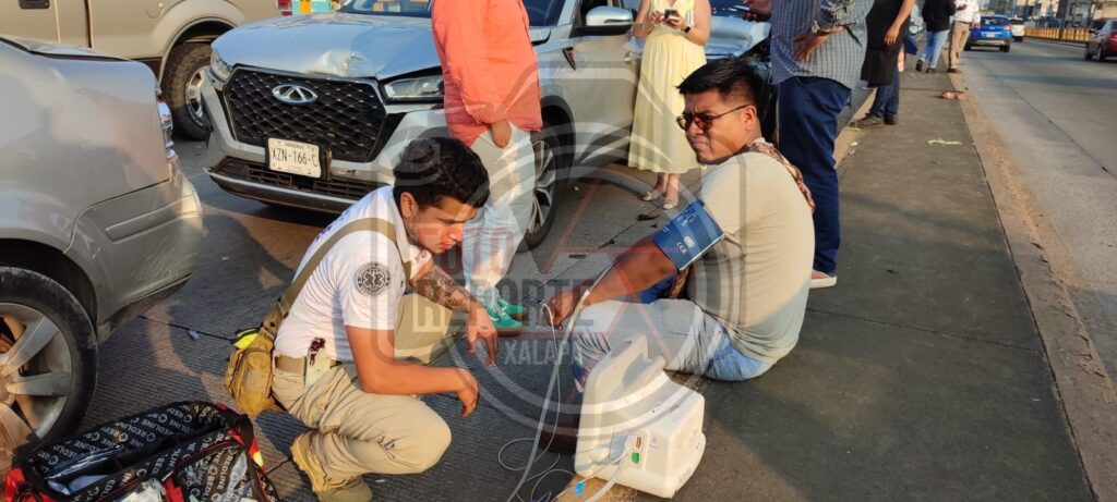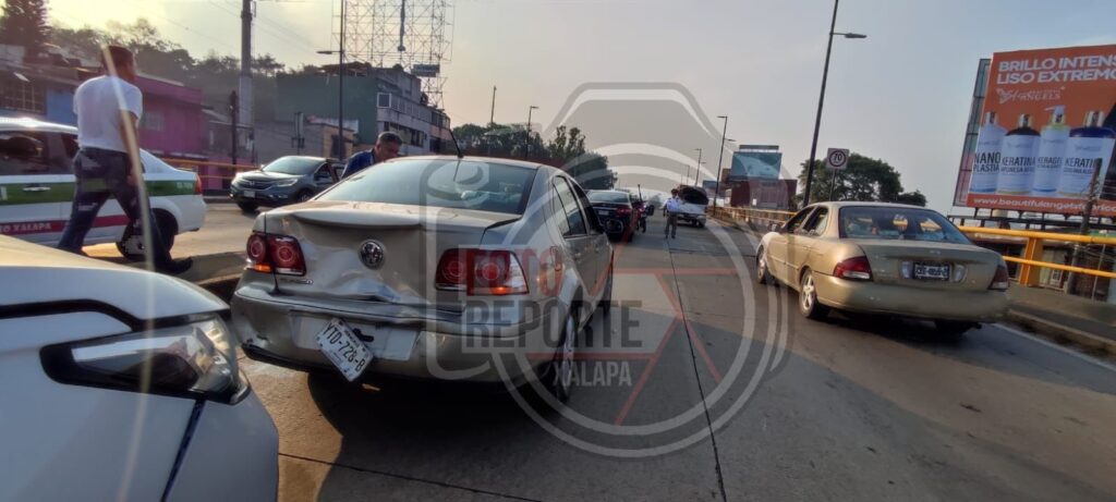 Xalapa, Ver.,29 de abril de 2026.- Una carambola de seis vehículos se registró la tarde de este miércoles sobre la avenida Lázaro Cárdenas, a la altura del puente de Miguel Alemán, en el carril con dirección a la zona de Finanzas, la tarde de este miércoles.