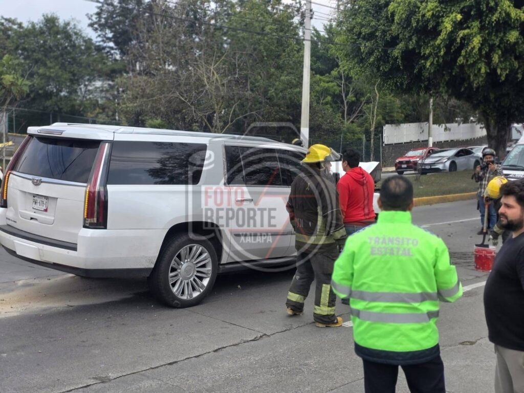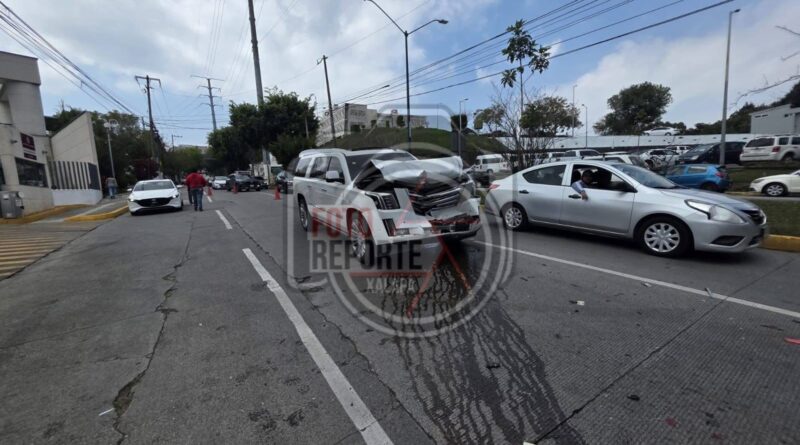 Xalapa, ver, 12 de febrero 2026.- Un accidente por alcance se registró sobre la avenida Arco Sur, frente a las instalaciones del Tribunal de Justicia Federal y en el carril con dirección a la zona de Las Trancas, luego de que una camioneta blanca impactara por un costado a otra unidad, proyectándola contra un tercer vehículo que circulaba adelante.