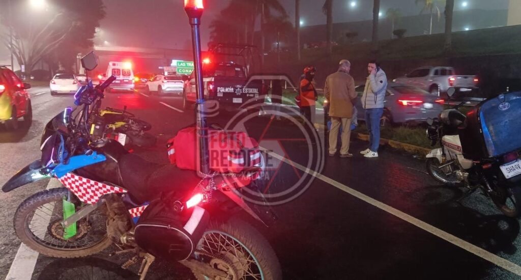 Xalapa, Ver. 01 de febrero 2026.- percance vial se registró sobre la carretera Xalapa–Veracruz, a la altura de Plaza Américas y con dirección a Las Trancas, donde un motociclista que circulaba en una motocicleta Suzuki se vio involucrado en un choque por alcance con una camioneta Nissan, lo que a su vez provocó que esta última terminara impactándose contra un automóvil Mazda.