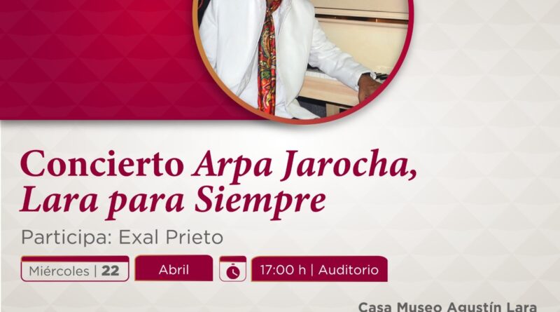 Xalapa, Ver., martes 21 de abril de 2026.- La Secretaría de Cultura de Veracruz (SECVER) invita al recital Arpa jarocha, Lara para siempre, el próximo miércoles 22 a las 17:00 horas, en el Auditorio de la Casa Museo Agustín Lara, en Boca del Río. La entrada es gratuita.