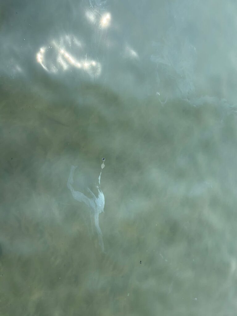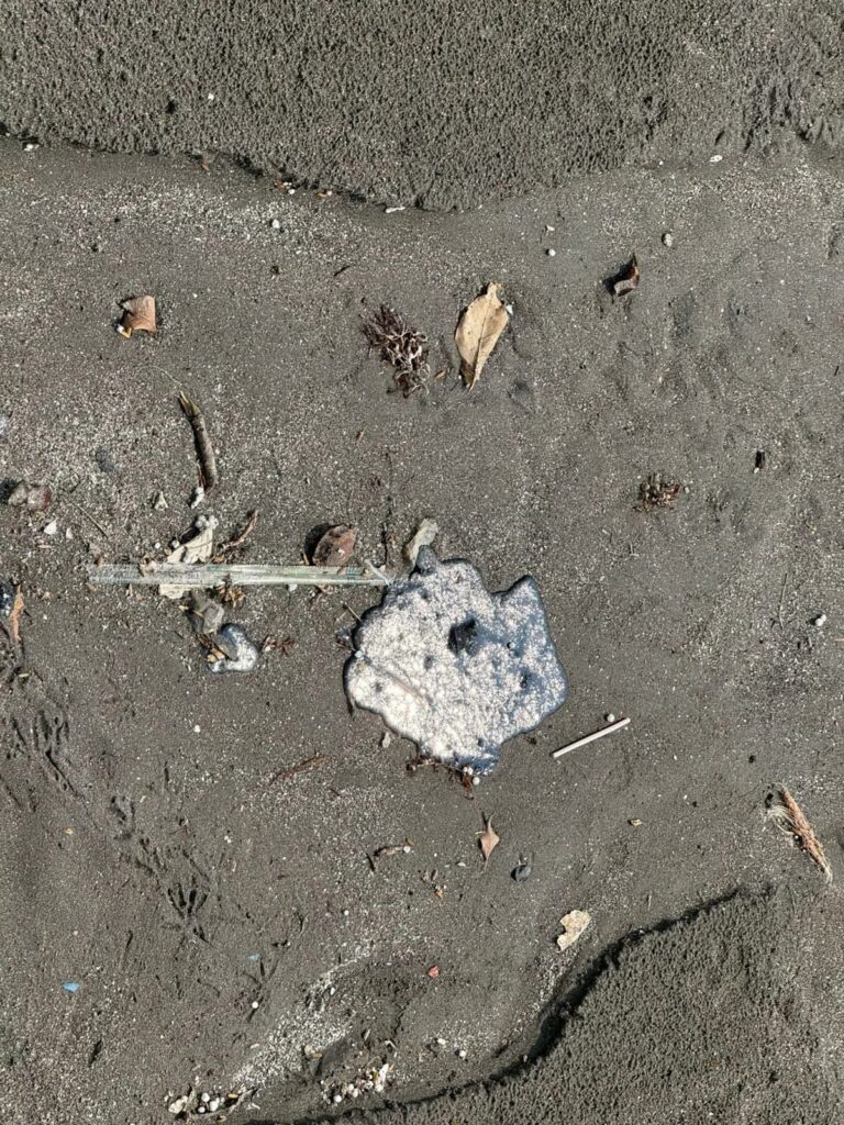 En otro punto, en las cercanías del malecón, también se observaron manchas de chapopote flotando entre la orilla y el agua, incluso en áreas donde aves marinas se mantenían ajenas al peligro.