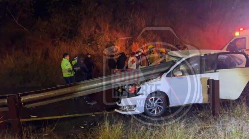 1-febrero-2026.-Un fuerte accidente se registró la madrugada de este domingo en el libramiento de Coatepec, luego de que un automóvil particular se impactara contra la valla metálica de protección, la cual se incrustó en la parte frontal del vehículo y dejó a dos personas lesionadas.