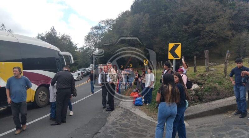 14 de noviembre 2025.- Un percance entre un autobús de la línea AU y una camioneta Dodge Durango gris detuvo la circulación esta tarde en la carretera federal Xalapa – Perote, a la altura de Piletas.