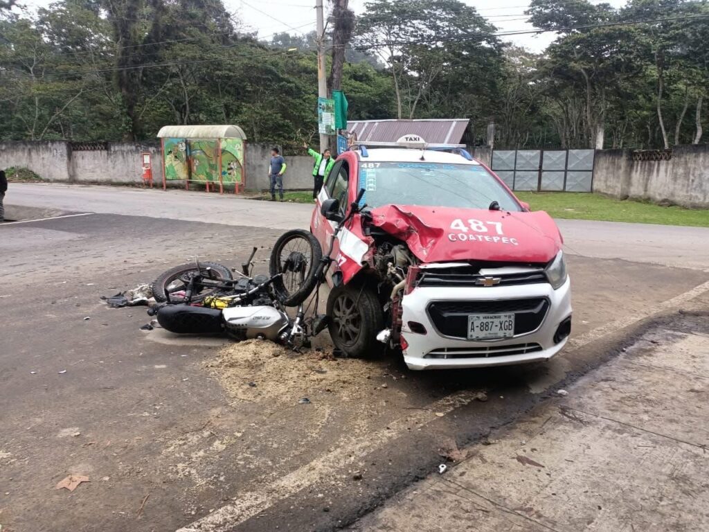 Coatepec, Ver. 31 de diciembre 2025.- Esta tarde se registró un accidente vehicular sobre la carretera Coatepec–Briones, a la altura de Casa de Campo, donde una motocicleta y un taxi se vieron involucrados en un choque, lo que generó la movilización de los cuerpos de emergencia.