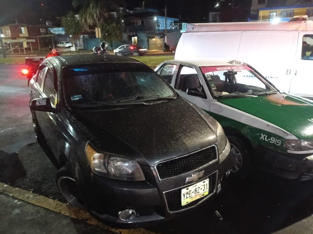 Derivado del choque, el taxi fue proyectado contra un vehículo particular estacionado en el lugar.