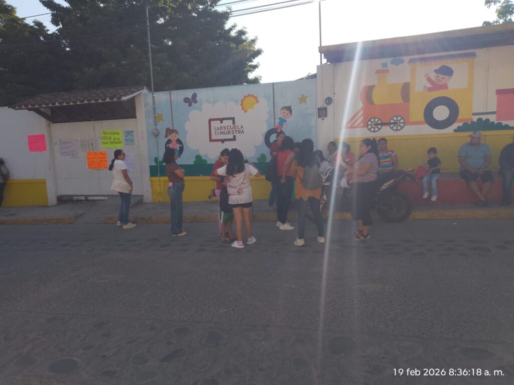 19 de febrero 2026.- la mañana de este jueves, madres y padres de familia del Jardín de Niños “Justino Sarmiento”, con clave 30DJN0365H, suspendieron actividades y cerraron el acceso al plantel en el municipio de Jalcomulco, como forma de presión ante la falta de personal básico para su funcionamiento.
