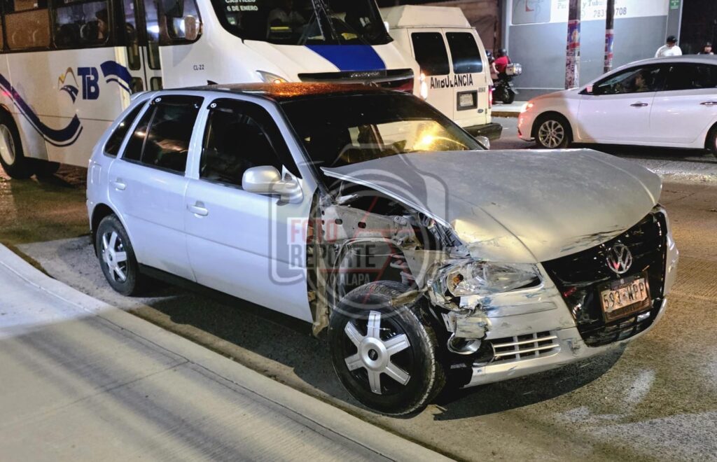 Xalapa, Ver. 26 de abril 2026.- Cinco personas resultaron lesionadas tras un percance vial registrado la noche de este domingo en el cruce de la avenida Chedraui Caram y Camino al Sumidero, a la altura de la zona conocida como El Peñascal, donde se vieron involucrados un automóvil Chevy negro y un Pointer gris.
