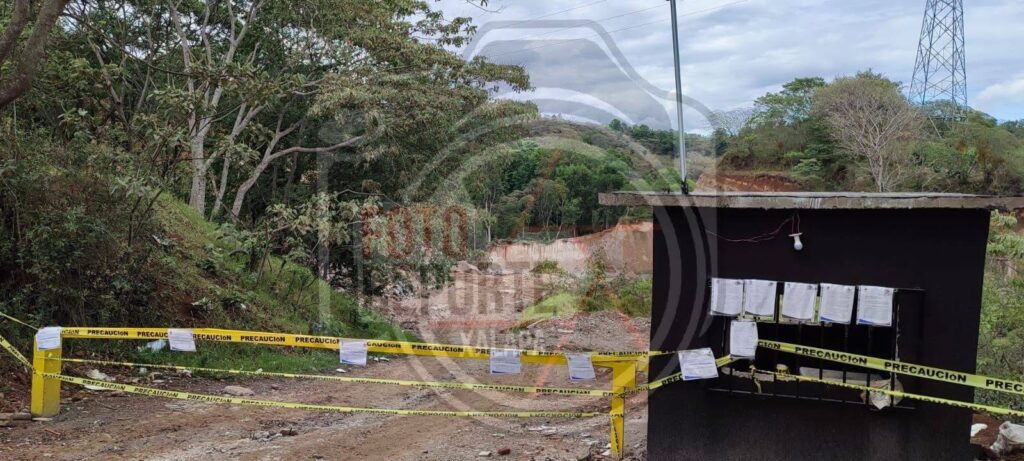 Banderilla, Ver., 6-abril-2026.-Autoridades municipales llevaron a cabo la clausura provisional de un banco de extracción de arena ubicado sobre el camino Banderilla–El Tronconal, debido a que no contaba con los permisos correspondientes para su operación.