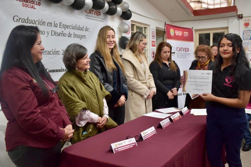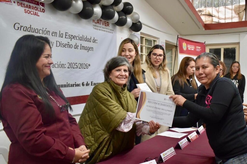 Xalapa, Ver., 13 de enero de 2026.- Como parte de la vinculación entre el Ayuntamiento de Xalapa y la Secretaría del Trabajo, Previsión Social y Productividad (STPSP), a través del Instituto de Capacitación para el Trabajo del Estado de Veracruz (ICATVER) se llevó a cabo la clausura del curso de Especialidad en Estilismo y Diseño de Imagen, en el Centro de Gestión Comunitaria 6 de Enero, del cual egresaron 14 participantes.