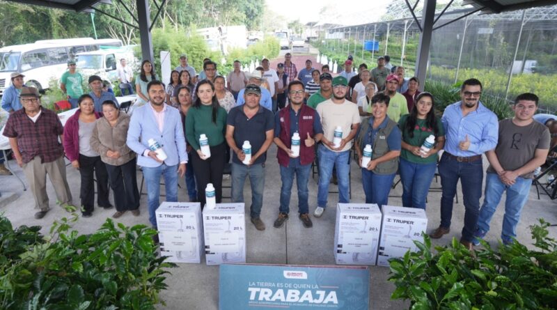 Con la presencia de 25 productores de café de varias localidades, el Ayuntamiento, encabezado por el presidente municipal Erick Ruíz Hernández, realizó la entrega. A cada uno, correspondieron 50 plantas de café variedad marsellesa, 20 plantas de maracuyá, una aspersora y dos litros de caldo sulfocálcico (SULFOCa), el cual es un fungicida y acaricida producido con ingredientes naturales.