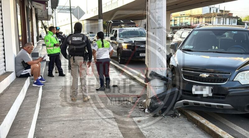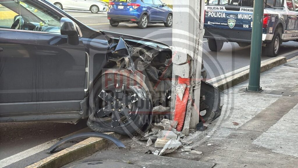 Xalapa, Ver., 24-septiembre-2025.- La mañana de este miércoles se registró un accidente sobre la avenida Lázaro Cárdenas, a la altura del puente Bicentenario, donde el conductor de una camioneta Chevrolet se impactó contra un poste de la Comisión Federal de Electricidad (CFE) y posteriormente huyó del lugar.
