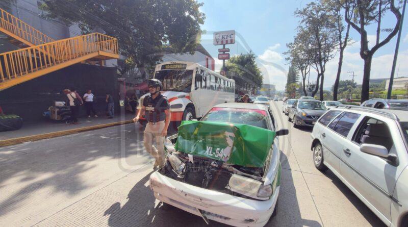 Xalapa.,26-octubre-2025.-El conductor de un taxi con número económico XL-5499 resultó lesionado la mañana de este domingo, luego de chocar por alcance contra una camioneta Nissan de color rojo, cuando circulaba sobre la avenida Lázaro Cárdenas, a la altura del Congreso del Estado con dirección hacia Banderilla.