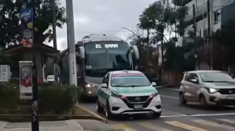 La imprudencia del conductor provocó molestia entre quienes transitaban por la concurrida avenida, ya que los camiones tuvieron que detenerse metros atrás, exponiendo a los usuarios a descender en un área no segura.