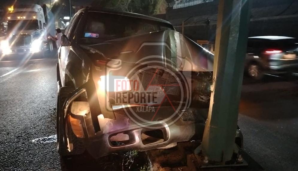 Xalapa, Ver., 12 de diciembre de 2025.– La noche de este viernes se registró un accidente vial sobre el puente Macuiltepetl, en el carril con dirección hacia Banderilla, luego de que el conductor de una camioneta se impactara contra una luminaria.