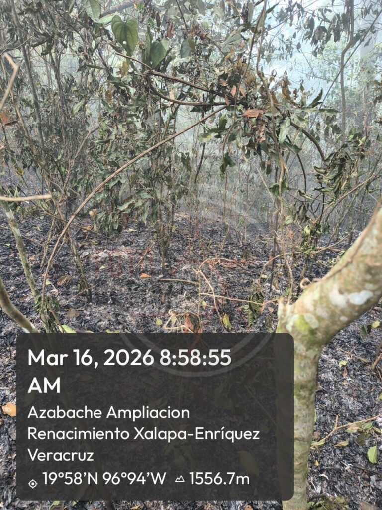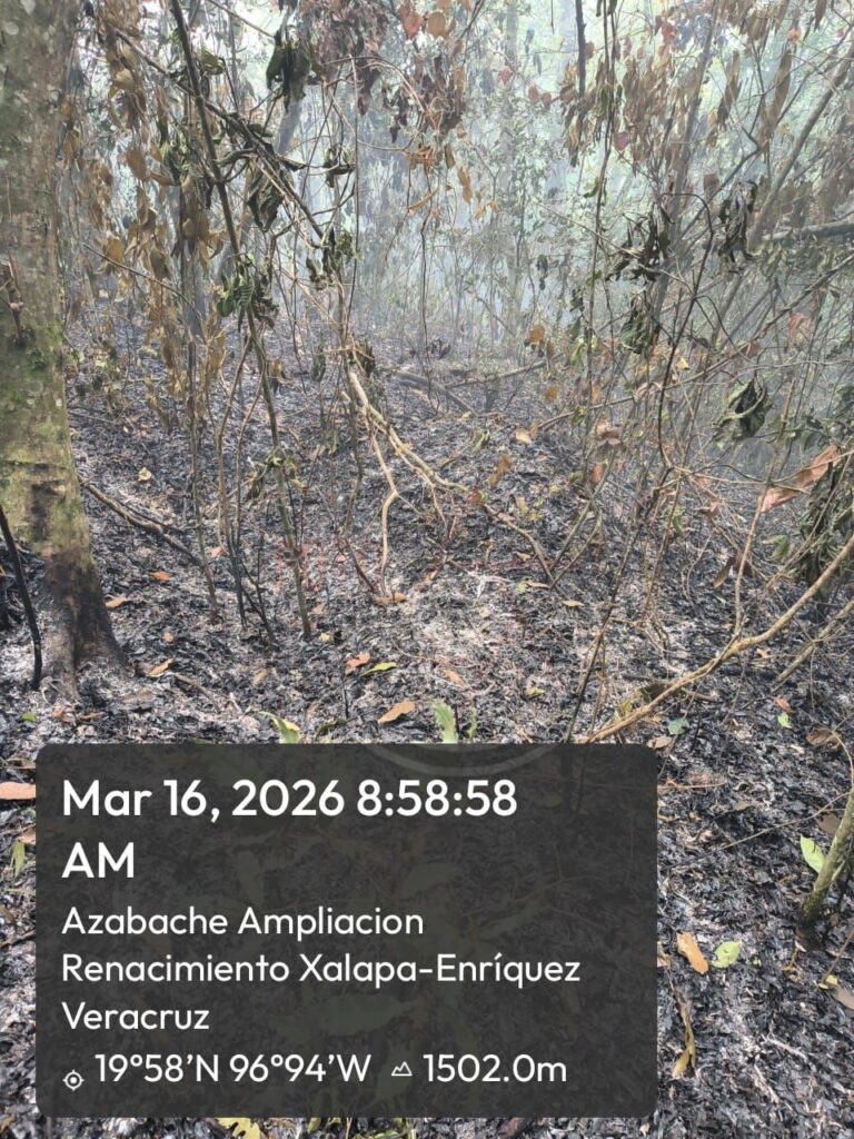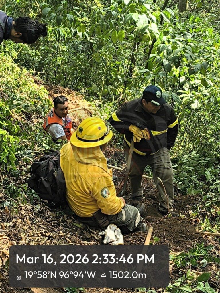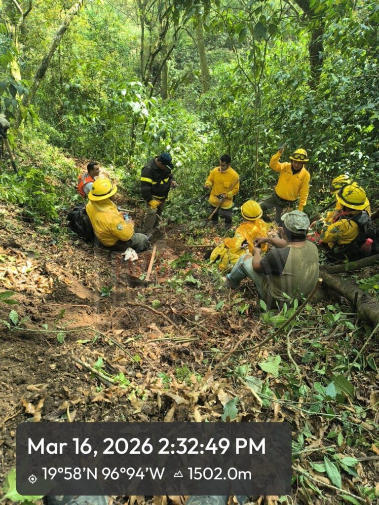 Xalapa, Ver. 16 de marzo de 2026.- Elementos de Protección Civil de Banderilla continuaron este lunes con las labores para sofocar un incendio registrado en la zona del bosque del río Sedeño.