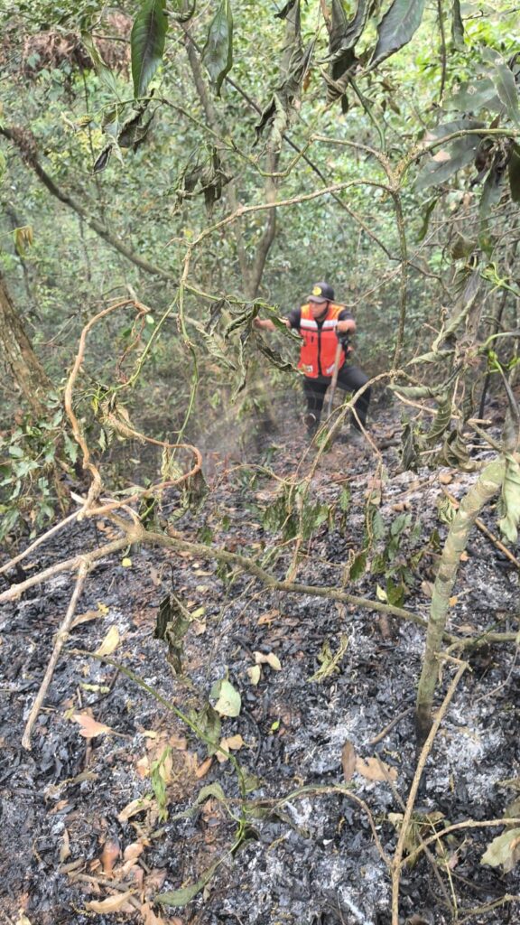 Ante esta situación, el personal de emergencia mantuvo las acciones de control y enfriamiento en el área afectada para evitar que el fuego se extendiera hacia otras zonas del bosque.