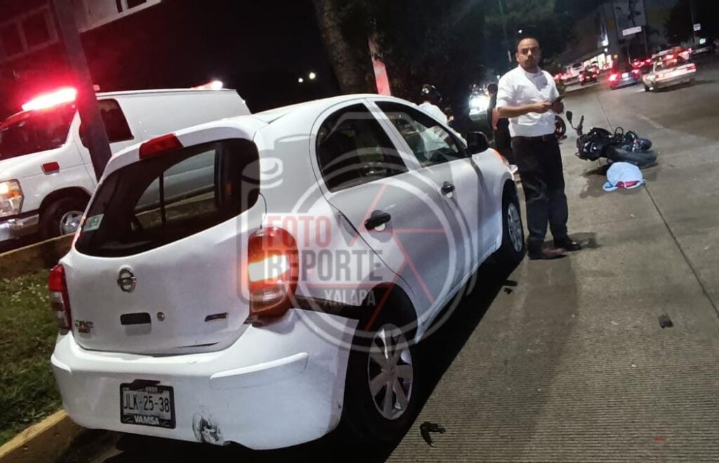 De acuerdo con los primeros reportes, en la motocicleta viajaban dos personas. El percance ocurrió cuando un vehículo March color blanco frenó de manera repentina por causas aún no esclarecidas, lo que provocó que la unidad de dos ruedas se impactara contra la parte trasera del auto.