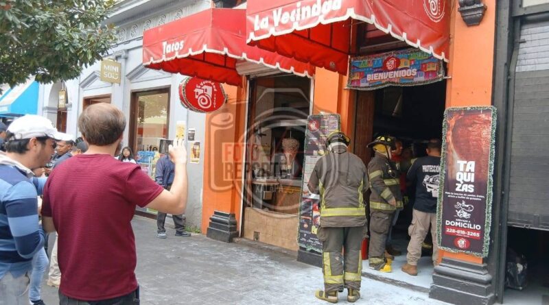 Xalapa, Ver. 21 de noviembre 2025.- La tarde de este viernes se registró un corto circuito en un transformador al interior de la taquería “La Vecindad”, ubicada sobre la calle Enríquez, en el centro de esta capital.